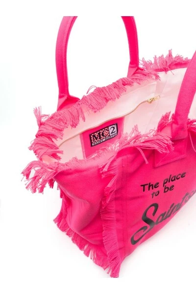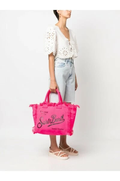Transportez tous vos essentiels de plage avec style grâce à ce sac de plage Vanity logo-print de MC2 SAINT BARTH. Le sac est disponible dans une belle couleur rose et est parfait pour la saison estivale. Disponible en taille IT, ce sac à main est un must-have pour toute femme à la mode.