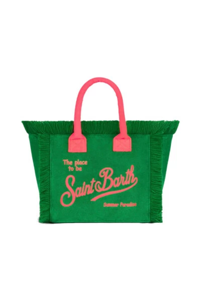 Ce sac à main MC2 Saint Barth pour femmes est fabriqué en matériau éponge et dispose de poignées doubles, d’une bandoulière amovible, d’un logo MC2 Saint Barth brodé, de détails de fil à franges et d’une fermeture à glissière. Mesurant 30 x 22 x 15 cm, il est parfait pour une utilisation quotidienne.