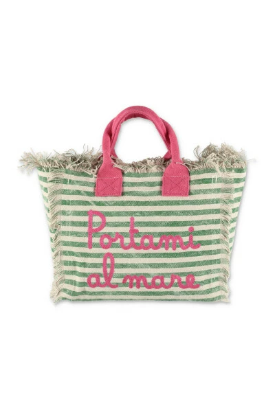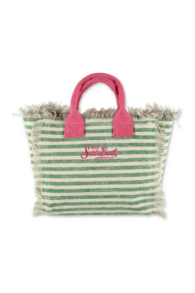 Transportez vos essentiels avec style grâce à ce sac MC2 SAINT BARTH vert et ivoire à rayures en toile de coton pour filles. Fabriqué en Inde, ce sac est parfait pour toute femme à la mode.