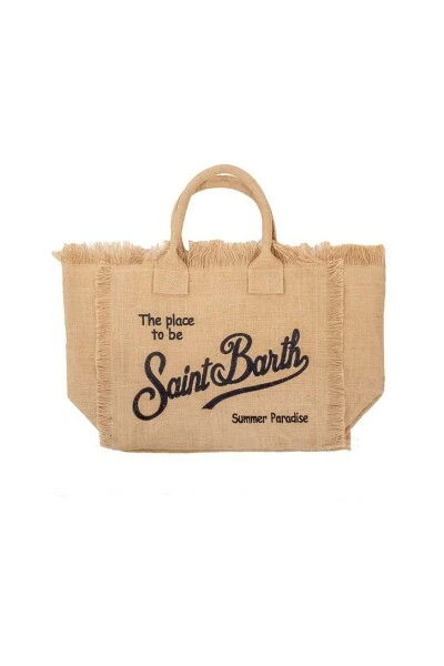 Découvrez le sac à main pour femme MC2 Saint Barth dans le modèle Vanity Jute. Ce grand sac de plage de couleur naturelle présente des franges sur les bords et des broderies bleues qui lisent ‘The place to be Saint Barth’. Le rabat intérieur a une poche zippée et une impression Saint Barth, tandis que l’intérieur a également une poche zippée et une petite poche. Ce sac polyvalent peut être porté à la main ou sur l’épaule. Dimensions: Longueur: 35 cm, Hauteur: 30 cm, Profondeur: 21 cm. MODÈLE: VANITY JUTE1061. COMPOSITION: 100% coton.
