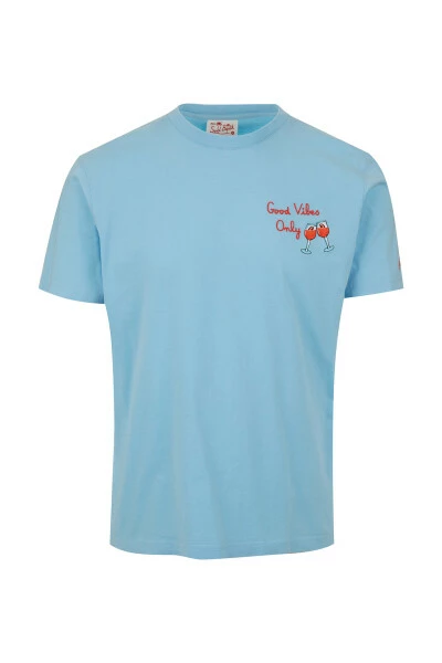 Ce T-shirt MC2 Saint Barth pour homme présente une encolure ronde classique et des motifs de vacances brodés sur la poitrine et les manches. Parfait pour ajouter une touche de plaisir à votre garde-robe décontractée.