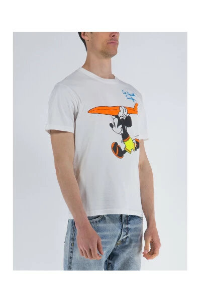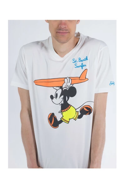 Préparez-vous à affronter les vagues avec ce t-shirt MC2 Saint Barth pour homme. Fabriqué en jersey de coton doux, il présente une impression amusante de Mickey Surf et le logo de la marque brodé sur la manche gauche. Parfait pour une journée décontractée ou des vacances à la plage.